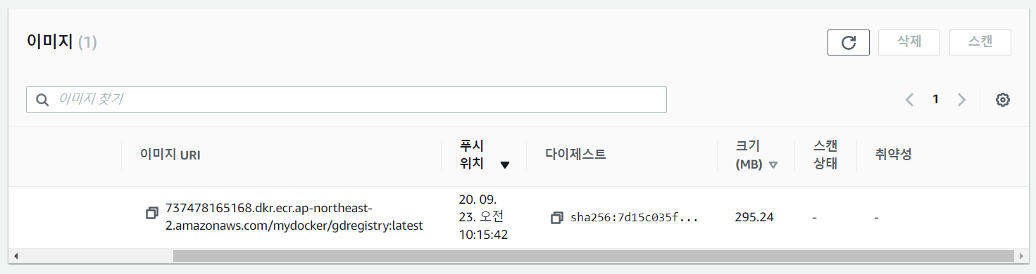 ECR 에 있는 Image 확인